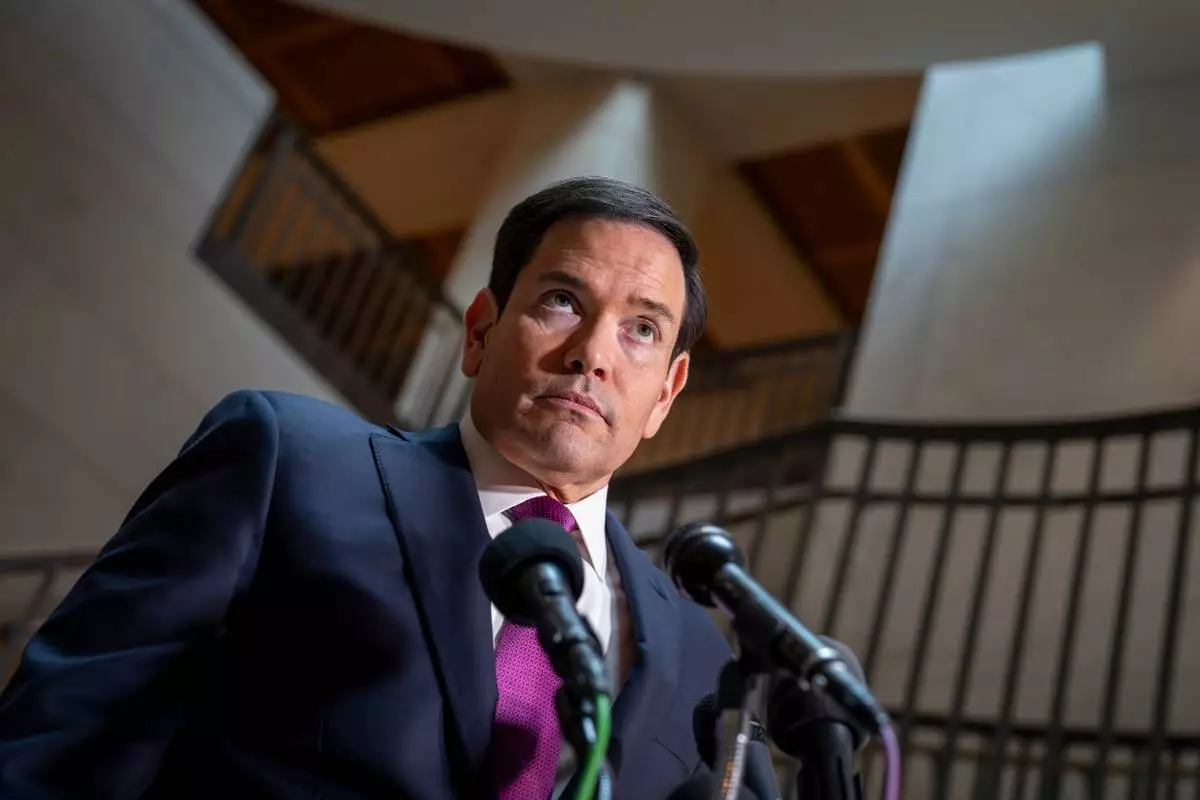 Secretary of State Marco Rubio speaks to reporters as he arrives for an intelligence briefing with top lawmakers on Iran, at the Capitol in Washington, Monday, Mar. 2, 2026. (AP Photo/J. Scott Applewhite)