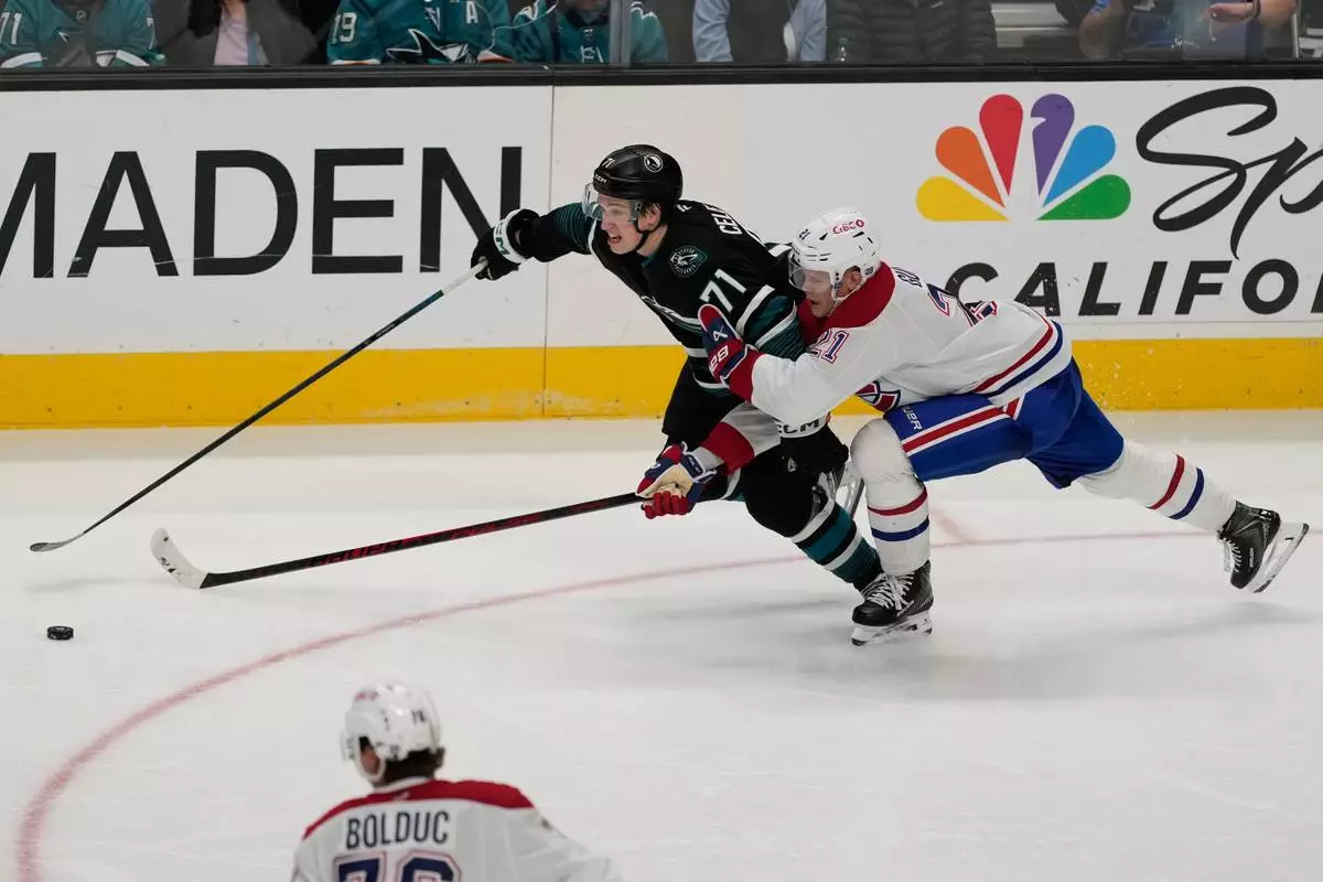 SAN JOSE, Calif. (AP) — Macklin Celebrini had a goal and three assists, Kiefer Sherwood scored the tiebreaking goal on a power play with 3:26 remaining, and the San Jose Sharks beat the Montreal Canadiens 7-5 on Tuesday night.