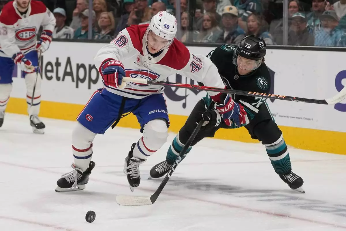 Yaroslav Askarov had 30 saves for the Sharks. Jakub Dobes stopped 21 of 27 shots for the Canadiens.