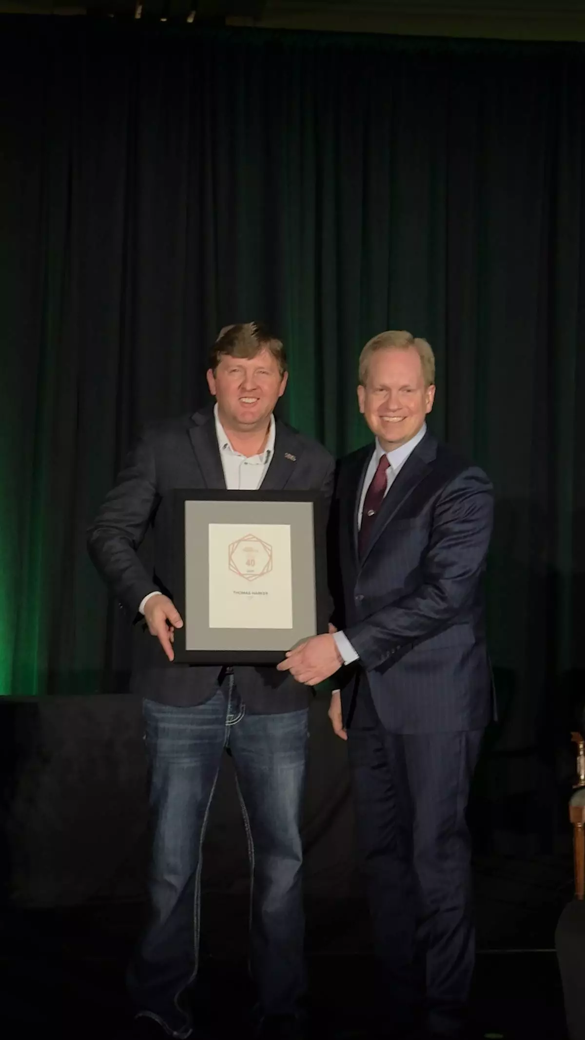 BZI's president, Thomas Harker accepts his award as one of the honorees in the Utah Business Forty Under 40 at a recent event sponsored by the media organization.