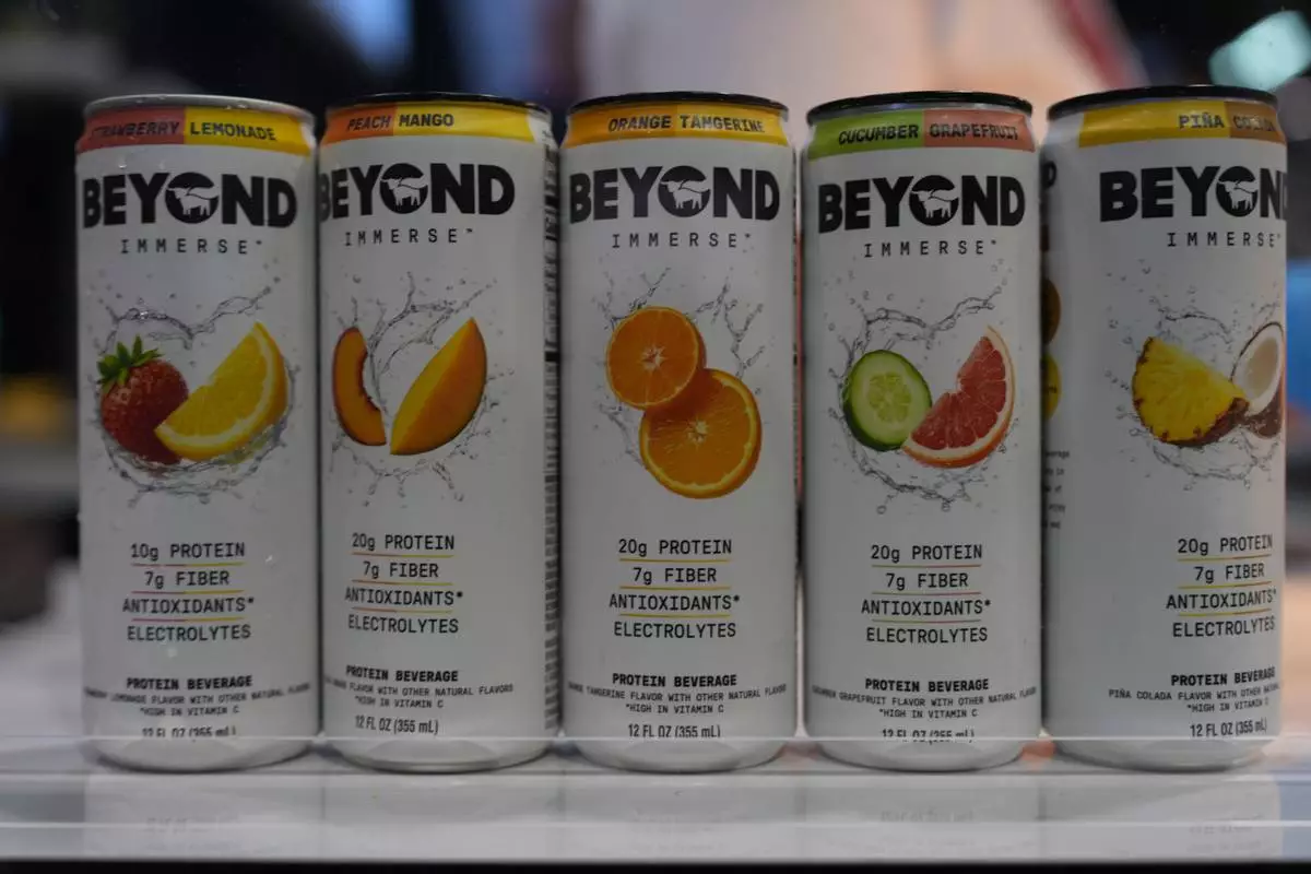 The new Beyond Immerse, Beyond's new sparkling plant‑protein drink flavors, positioned as a lighter, "sippable" protein beverage is showcased at the Natural Products Expo West 2026 at the Anaheim Convention Center in Anaheim, Calif., on Thursday, March 5, 2026. (AP Photo/Damian Dovarganes)