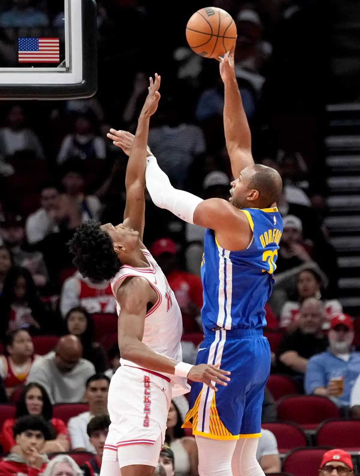 Alperen Sengun gave the Rockets the lead with about a minute left in regulation on a short basket before a 3-pointer by Horford put Golden State on top 101-99.