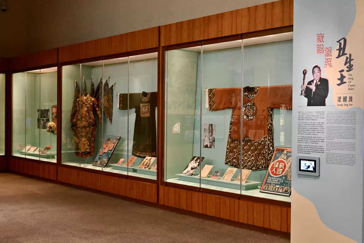 The exhibition "The King of Comic Roles" - Leung Sing Por is on display at the Hong Kong Heritage Museum (HKHM), featuring around 70 sets of selected museum collections and exhibits, including five costume sets exhibited for the first time, handbills, newspapers and photos. It showcases Leung's brilliant artistic journey spanning the realms of Cantonese opera, film and television.