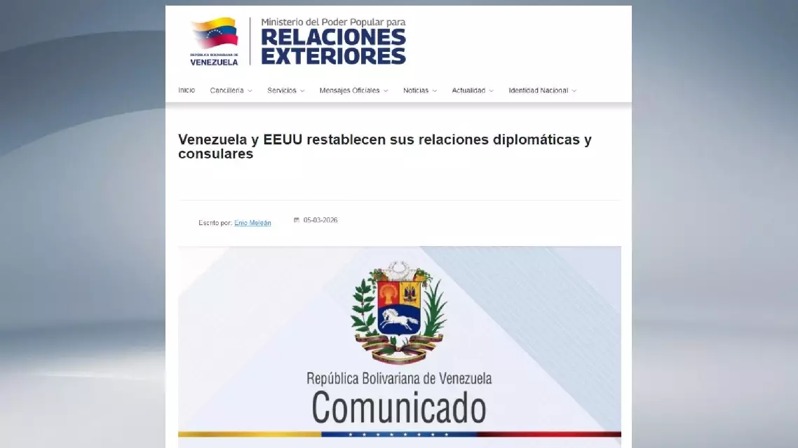Venezuela has decided to restore diplomatic and consular relations with the United States, the Venezuelan government announced Thursday.