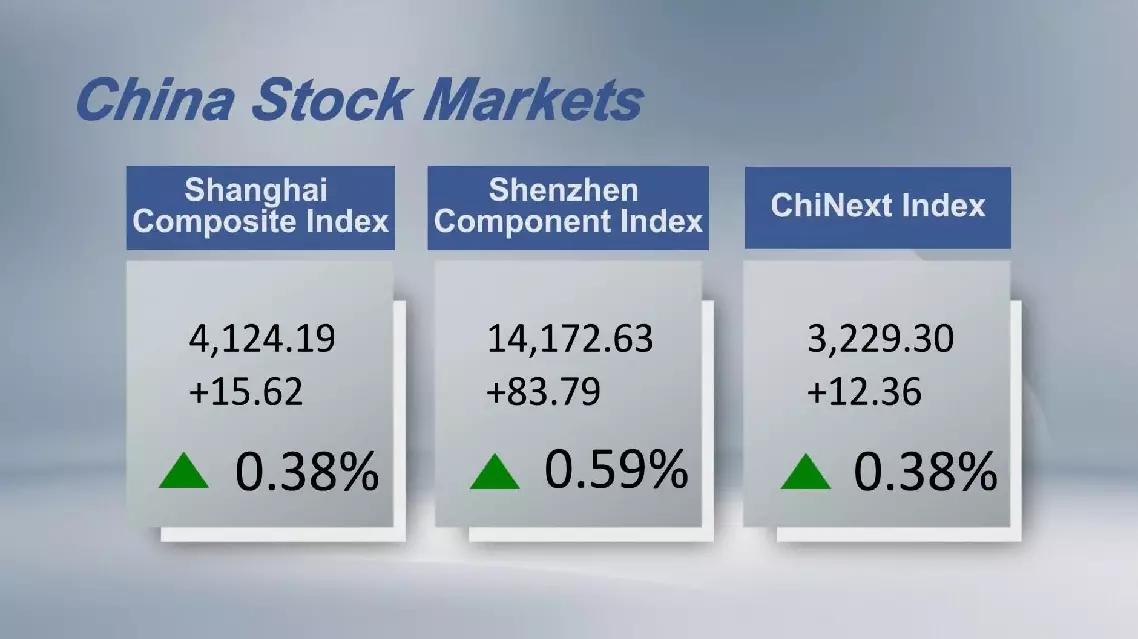 Chinese stocks closed higher on Friday, with the benchmark Shanghai Composite Index up 0.38 percent to 4,124.19 points.