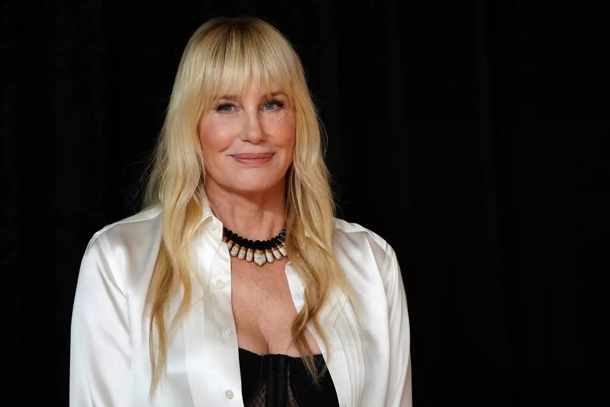 FILE - Daryl Hannah poses in the press room at the Oscars, Sunday, March 2, 2025, at the Dolby Theatre in Los Angeles. (Photo by Jordan Strauss/Invision/AP, File)
