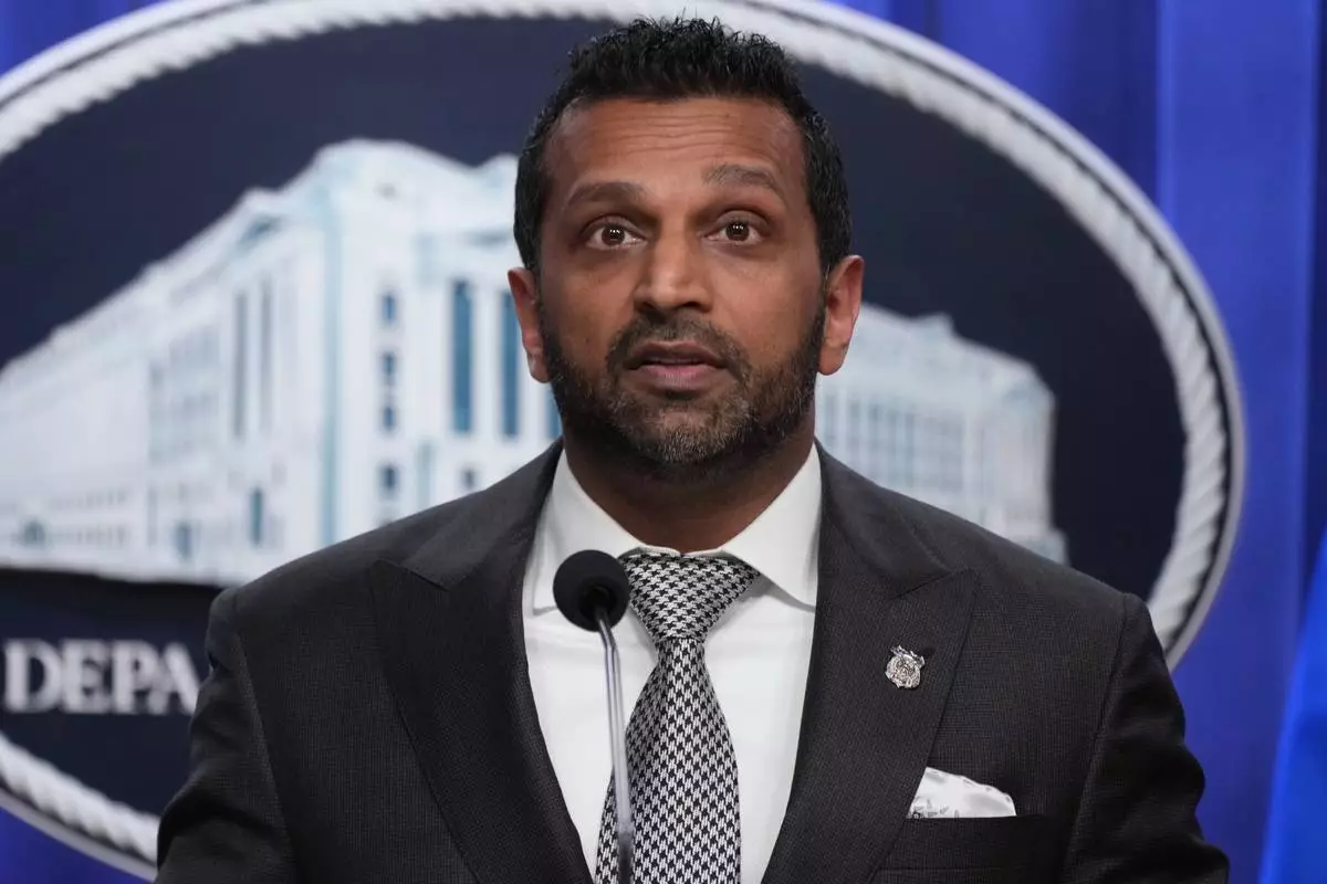 FBI Director Kash Patel speaks during a news conference at the Justice Department, Tuesday, April 21, 2026, in Washington. (AP Photo/Jacquelyn Martin)