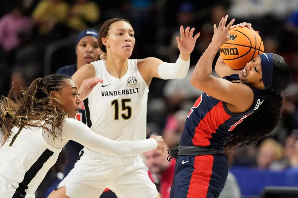 Tianna Thompson added 16 points for the Rebels (23-10), who jumped to a 23-2 lead in the first quarter and rode the wave of momentum to their second win this season over Commodores (27-4).