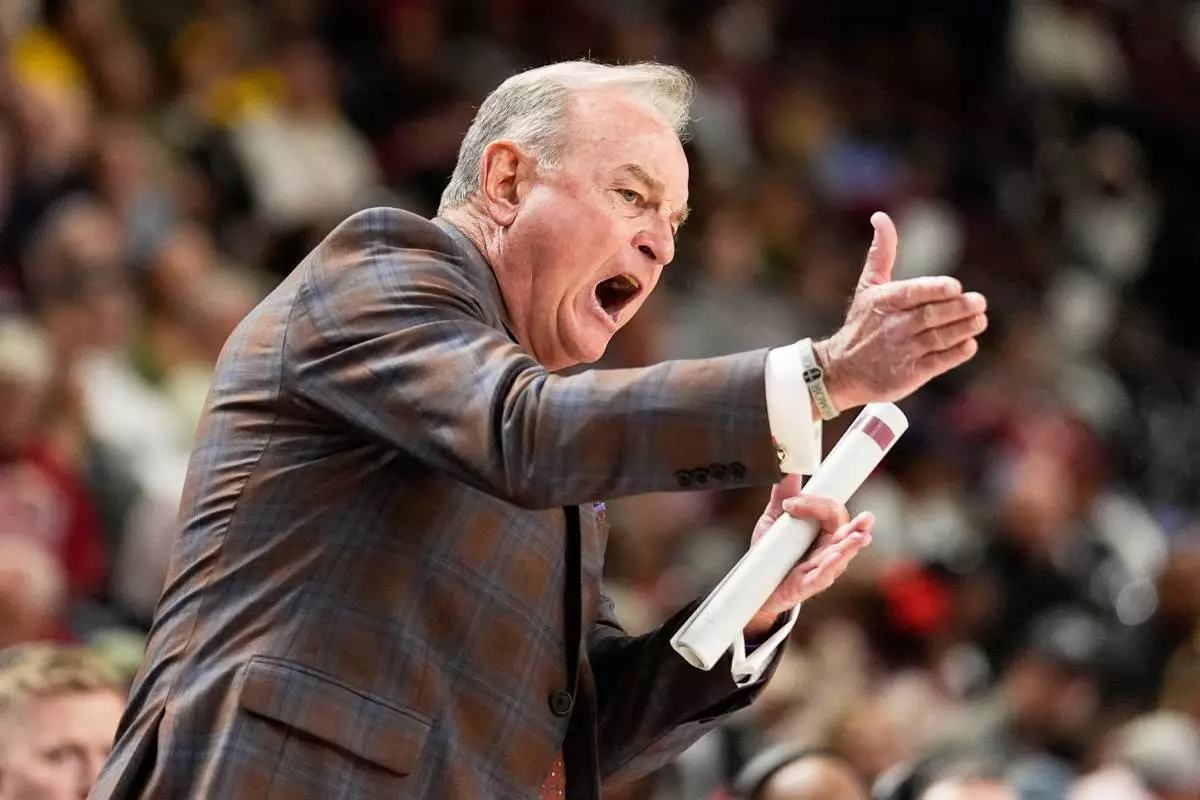 Texas head coach Vic Schaefer reacts to a call during first half of an NCAA college basketball game against Alabama in the quarterfinals of the Southeastern Conference tournament, Friday, March 6, 2026, in Greenville, S.C. (AP Photo/Chris Carlson)