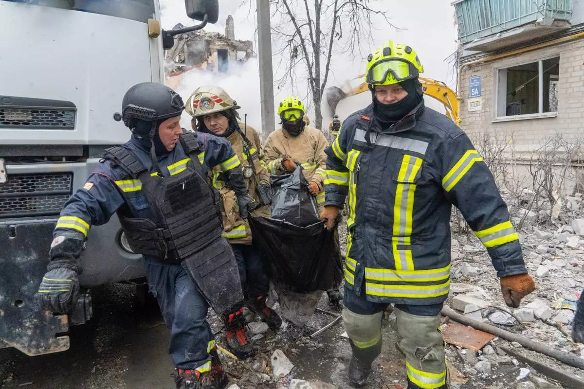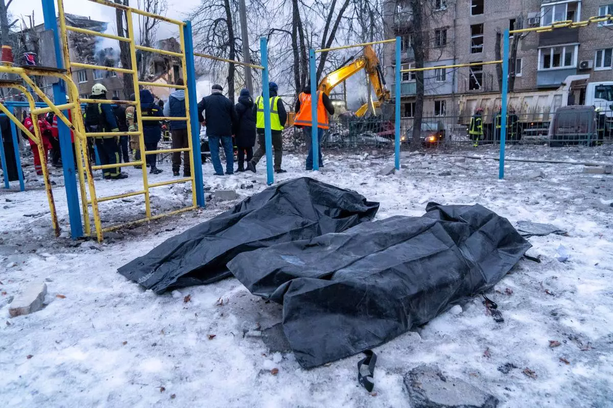 In Kharkiv, in Ukraine's northeast, emergency workers were combing the rubble, looking for survivors. Among the dead are a primary school teacher and her son, a second-grade student, who were killed in their home and an eighth-grader who also died with her mother, according to the city's mayor, Ihor Terekhov.