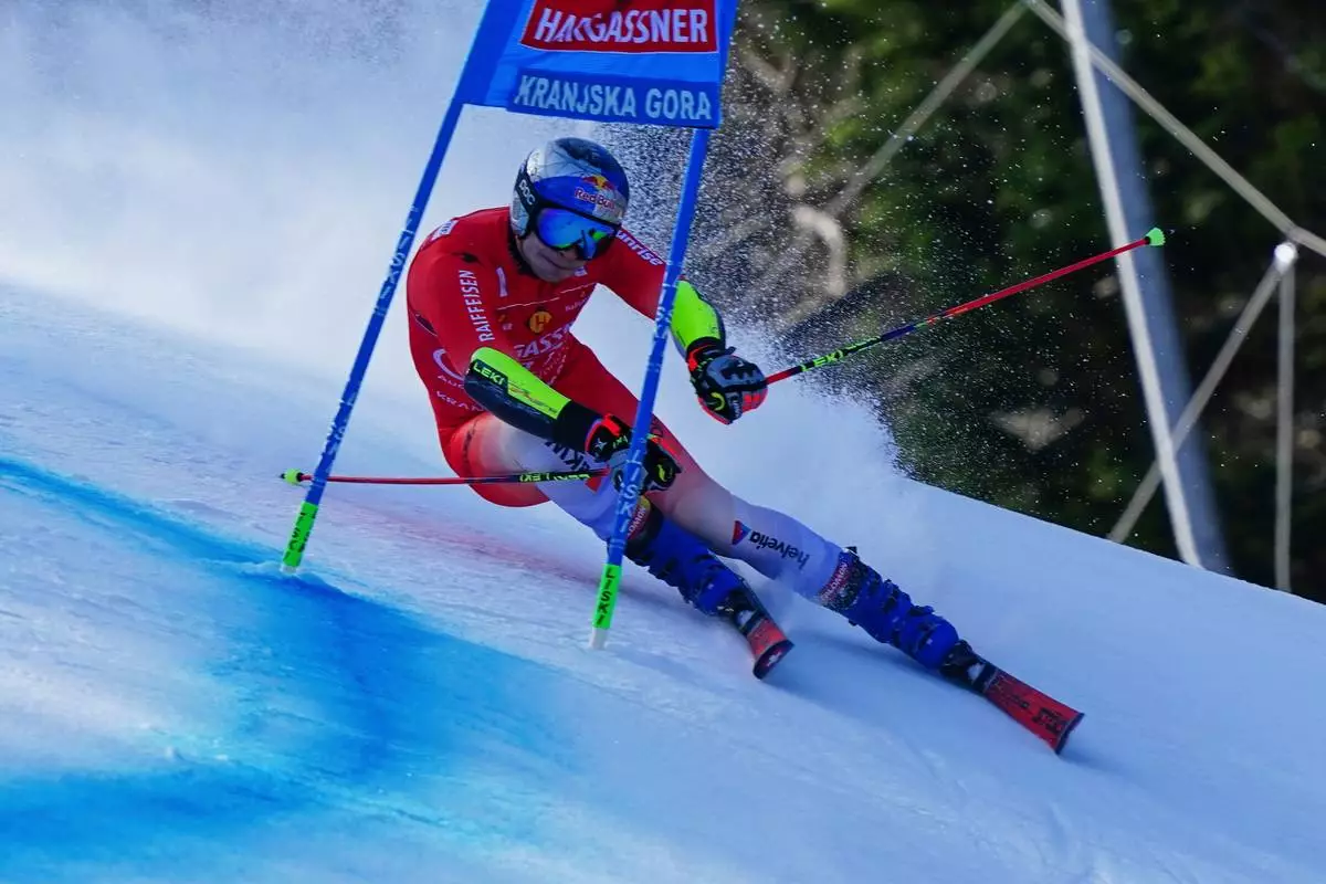 KRANJSKA GORA, Slovenia (AP) — Olympic champion Lucas Pinheiro Braathen was fastest in the first run of a World Cup giant slalom on Saturday with Marco Odermatt almost one second back in fifth.