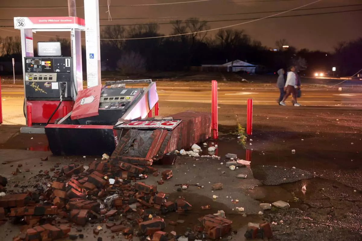 Debris covers the ground after a storm. Friday, March 6, 2026 in Tulsa, Okla. (Mike Simons /Tulsa World via AP)
