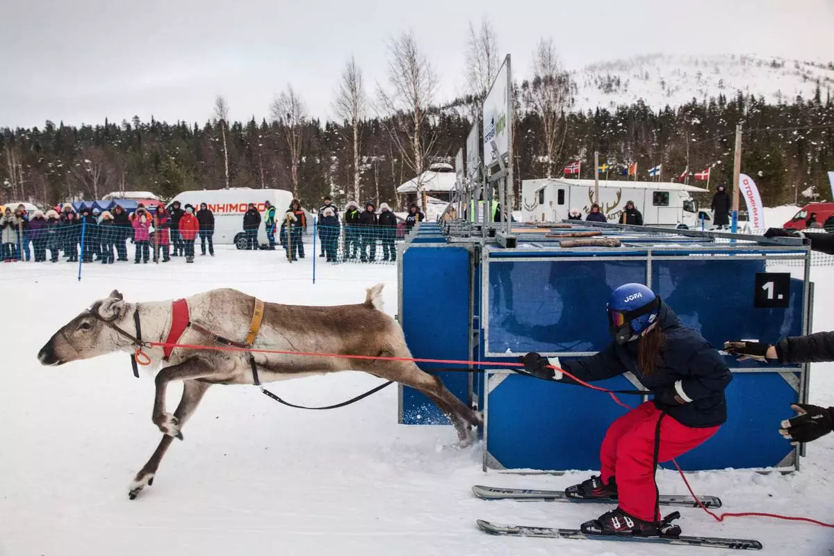 They watched and cheered as the reindeer galloped across the snow-covered track, pulling their handlers behind them on skis. Whoever is fastest wins the race.