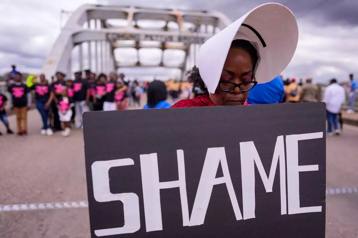People march on the 61st Bloody Sunday Anniversary, Sunday, March 8, 2026, in Selma, Ala. (AP Photo/Mike Stewart)