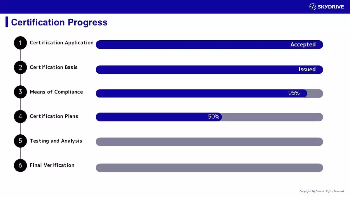 *Degrees of progress shown above are figures calculated by SkyDrive based on the current status of discussions with the JCAB and progress in the JCAB assessment process.