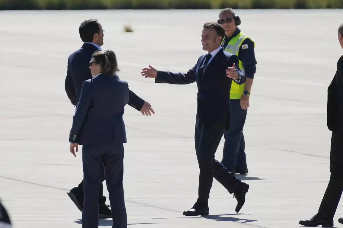 Macron will meet with Cypriot President Nikos Christodoulides and Greek Prime Kyriakos Mitsotakis at Cyprus' main air base on its southwestern edge where four Greek air force F-16s have been deployed.