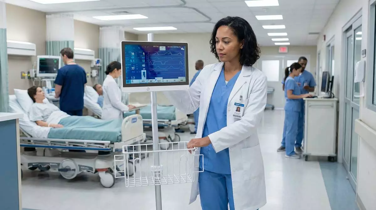 Hot-swappable batteries allow clinicians to maintain uninterrupted workflows during cart-based use, while AC-powered operation supports always-on deployments in fixed care settings.