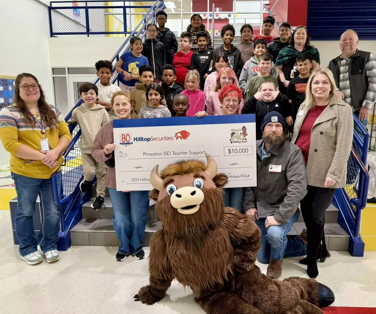Mo the Buffalo and HilltopSecurities representatives visited Gold Prize winners across Texas to present their donations and honor the educators’ contributions to their students and communities.