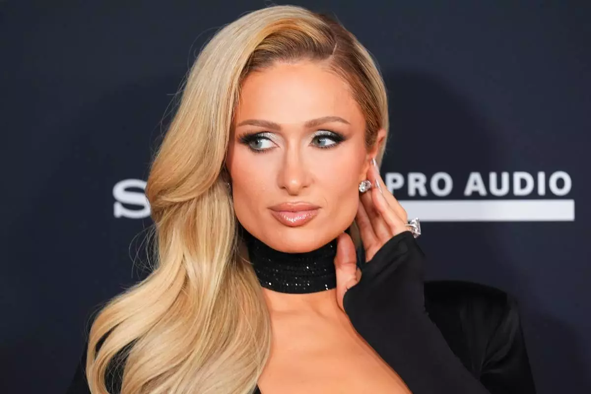 FILE - Paris Hilton arrives at the Pre-Grammy Gala on Saturday, Jan. 31, 2026, at the Beverly Hilton Hotel in Beverly Hills, Calif. (AP Photo/Chris Pizzello,File)