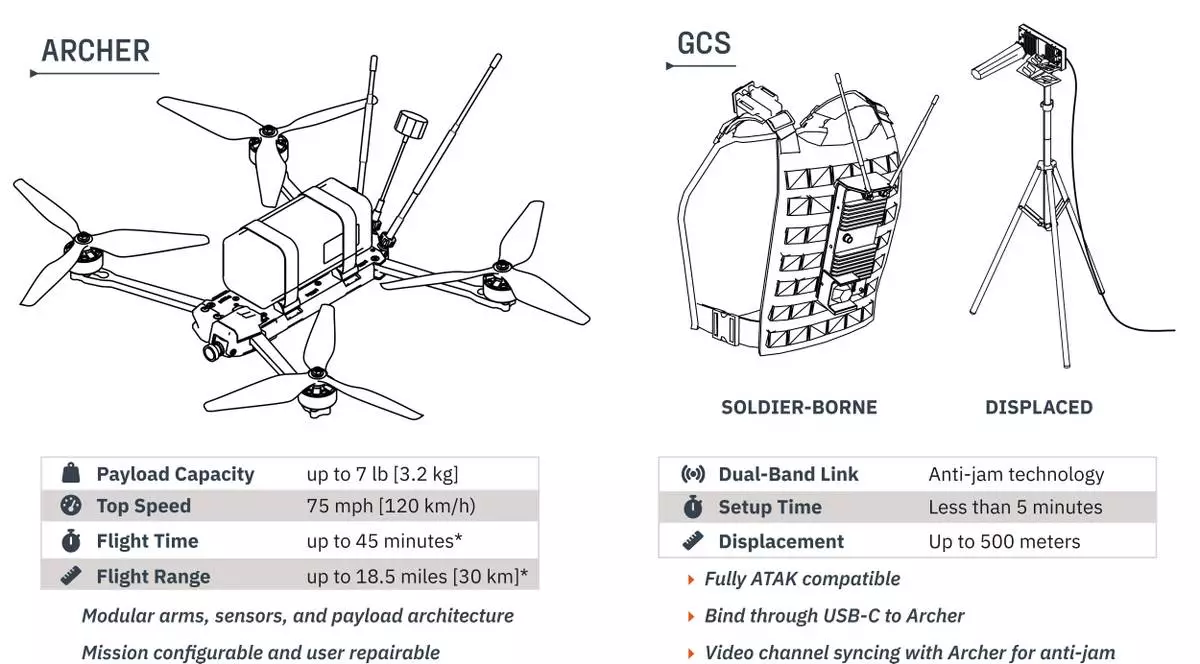 In addition to enhanced, modular FPV drones, the Block 2 system integrates Flatbow, a rugged, soldier-borne Ground Control System optimized for dismounted infantry operations. A field pack configuration enables infantry units to transport and deploy up to three FPV drones, while a displaced antenna allows pilot standoff distances of up to 150 meters, improving survivability and tactical flexibility in urban and contested terrain.