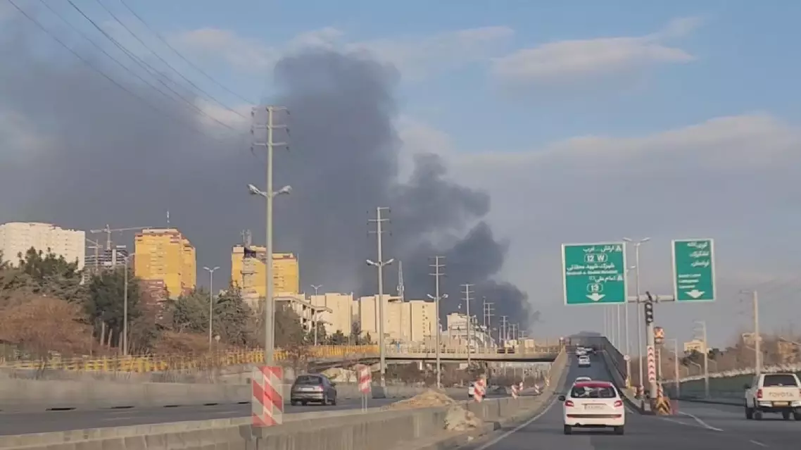 Footage taken by the reporter on Monday afternoon showed that the oil storage facility in eastern Tehran was still burning, with thick smoke billowing up.