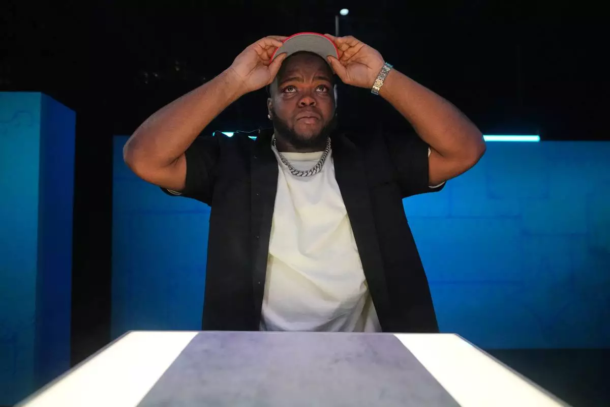 Democrat Shawn Harris, center, speaks during an Atlanta Press Club forum for candidates in Georgia's 14th Congressional District, Sunday, Feb. 15, 2026, at Georgia Public Broadcasting, in Atlanta. (J. Glenn Photography/Press Club via AP)