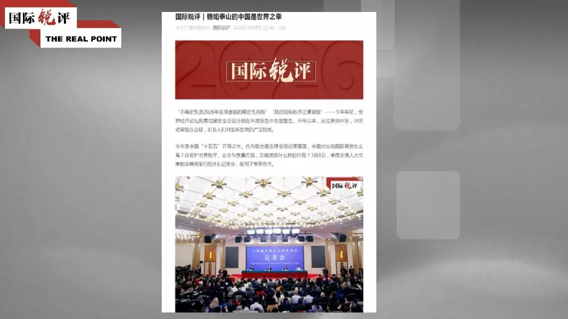Chinese Foreign Minister Wang Yi's relevant remarks at the press conference directly targeted the dangerous rise of hegemonism and power politics, and made clear the position and propositions of China as a responsible major country, namely safeguarding the central role of the United Nations in the international system, defending the outcomes of the victory in World War II, and building an equal and orderly multipolar world.