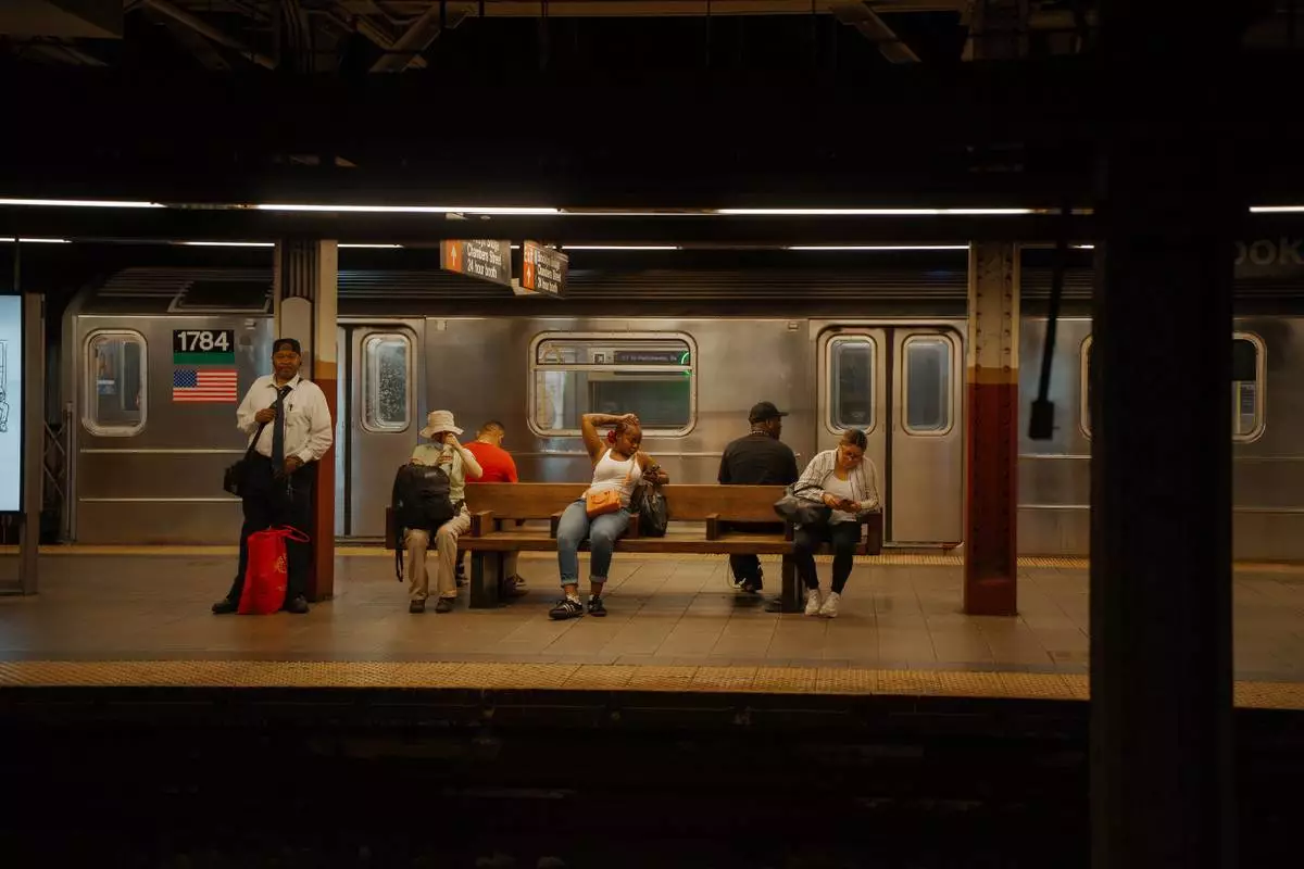 FILE - Passengers wait for the train on a subway platform during a heat wave on June 24, 2025, in New York. (AP Photo/Olga Fedorova, File)