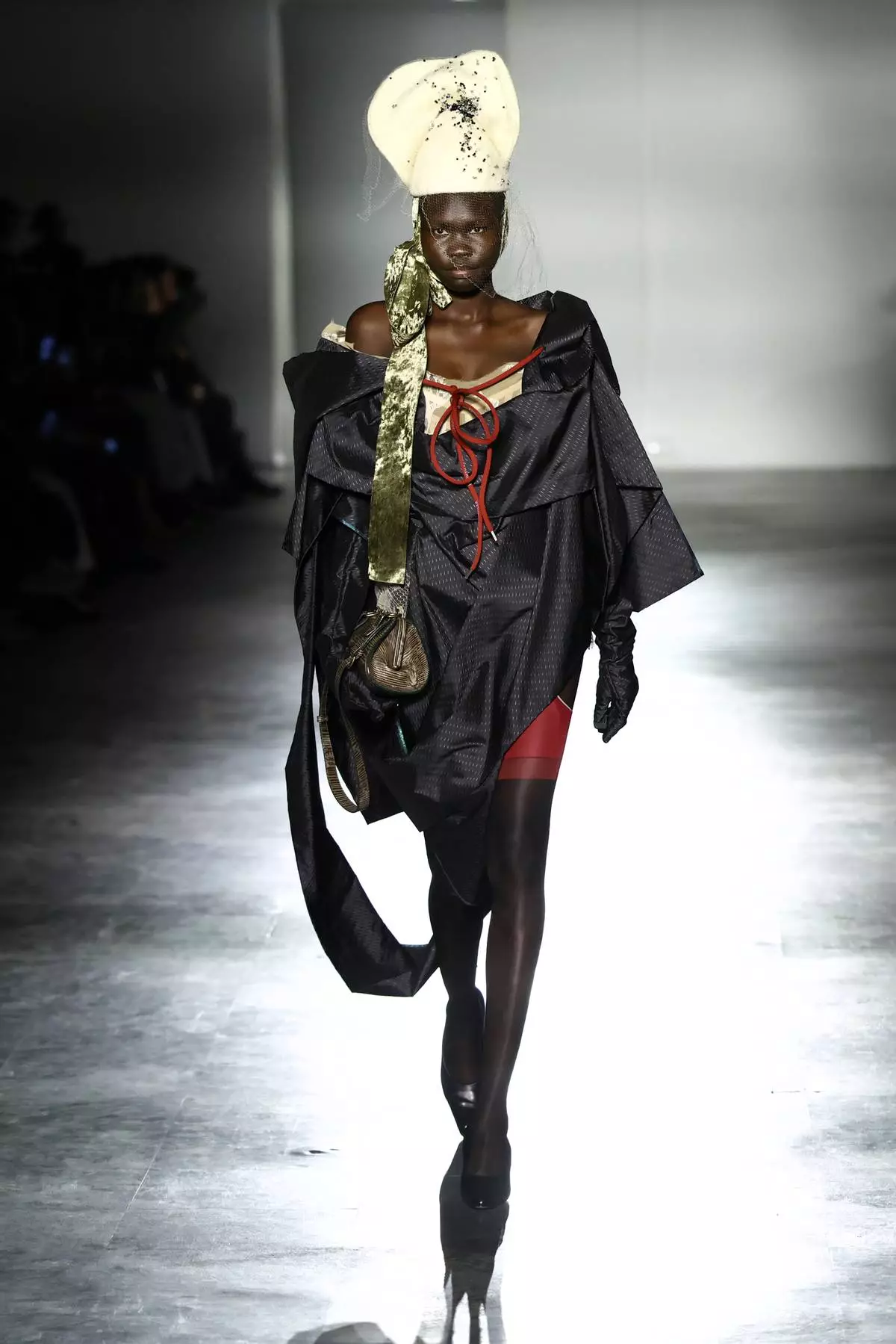FILE- A model wears a creation from the Vivienne Westwood Fall/Winter 2026-2027 Women's collection presented in Paris, March 7, 2026. (AP Photo/Tom Nicholson, File)