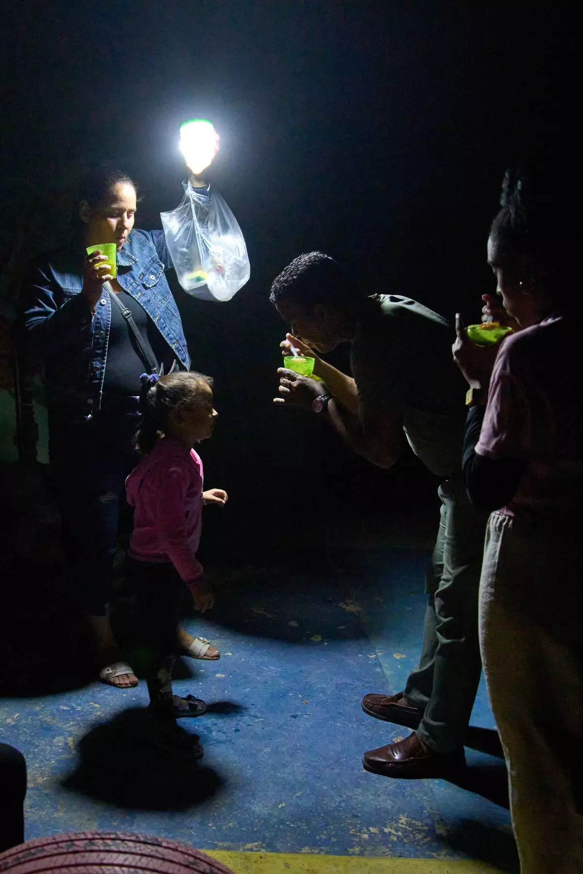 FILE- A man gives a girl a spoonful of soup on a street during a blackout in Havana, March 4, 2026. (AP Photo/Ramon Espinosa, File)