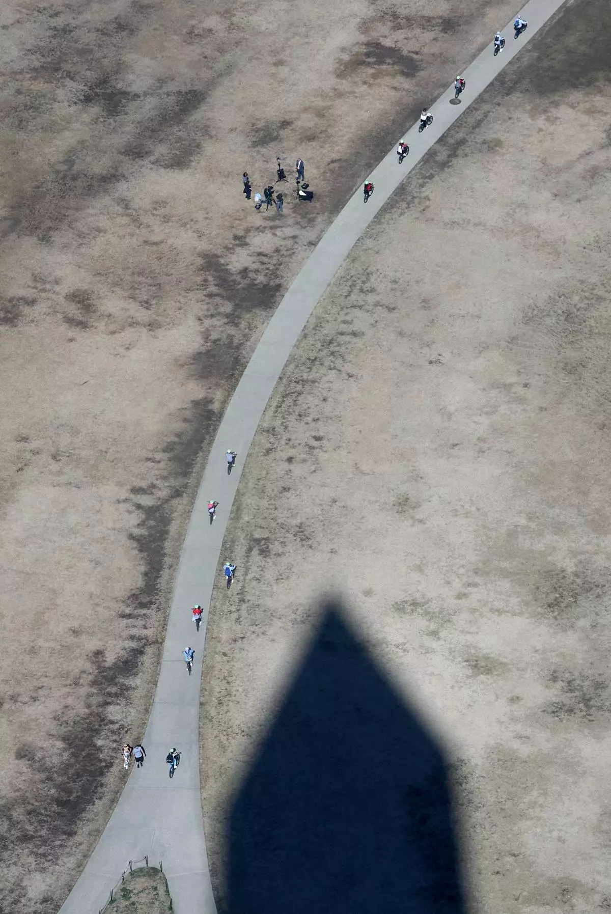 FILE- Bicyclists ride along the National Mall by a shadow of the Washington Monument, March 10, 2026, in Washington. (AP Photo/Jacquelyn Martin, File)