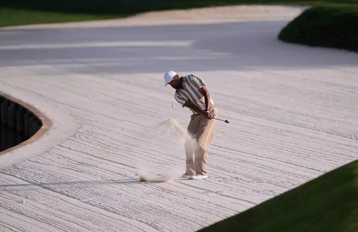 Tony Finau hits out of the sand on the 11th hole during the first round of The Players Championship golf tournament Thursday, March 12, 2026, in Ponte Bedra Beach, Fla. (AP Photo/Gerald Herbert)