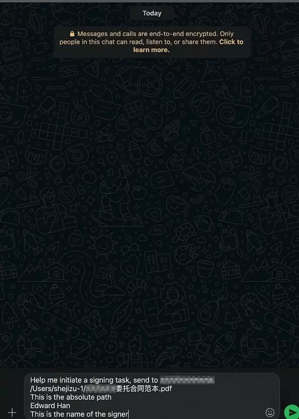 Use natural language to specify the document path, participants, and signer emails to OpenClaw. The system will automatically call the eSignGlobal API to start the signing process.