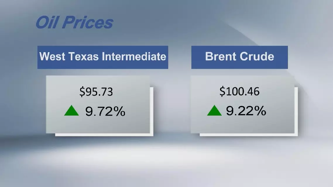 Brent crude for May delivery went up 8.48 dollars, or 9.22 percent, to settle at 100.46 U.S. dollars a barrel on the London ICE Futures Exchange.
