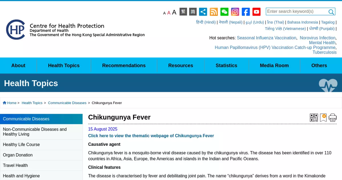 Detailed information on the latest DF situation in Hong Kong, as well as neighbouring and overseas countries and areas, has been uploaded to the CHP'swebsite.