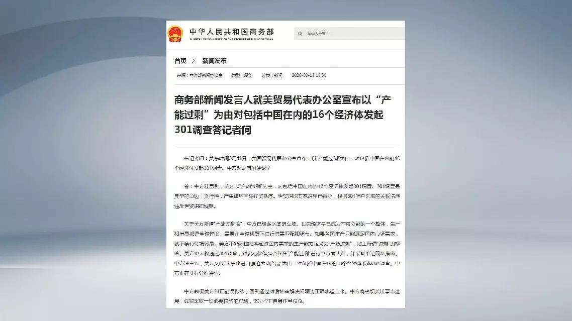 China has noted that the United States, using so-called "overcapacity," has initiated Section 301 investigations into 16 economic entities, including China, said the spokesperson, who also stressed that the trade probe is a typical unilateralist act that seriously undermines the international economic and trade order, and a World Trade Organization (WTO) panel has already ruled that the tariff measures taken based on Section 301 investigations violate WTO rules.