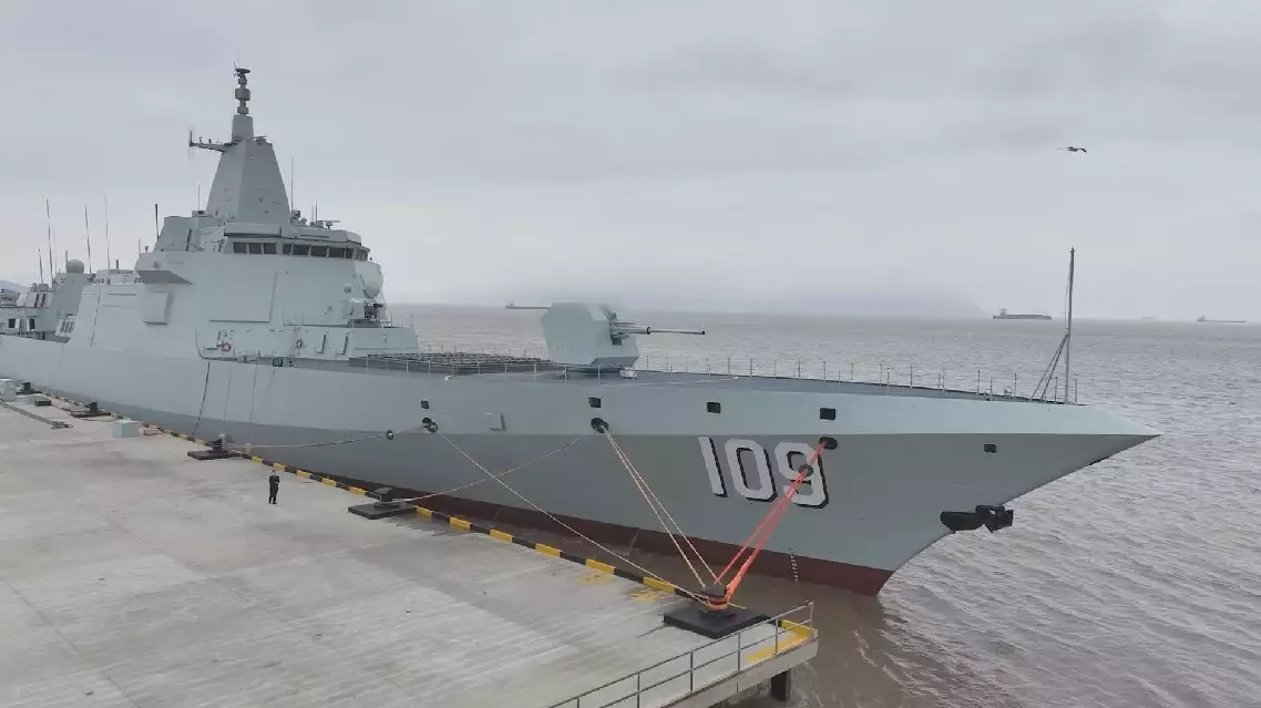 China's Type 055 destroyer Dongguan, hull number 109, boasts powerful combat capabilities, equipped with over 110 vertical launch units, multiple types of helicopters and drones, and a range of naval guns.