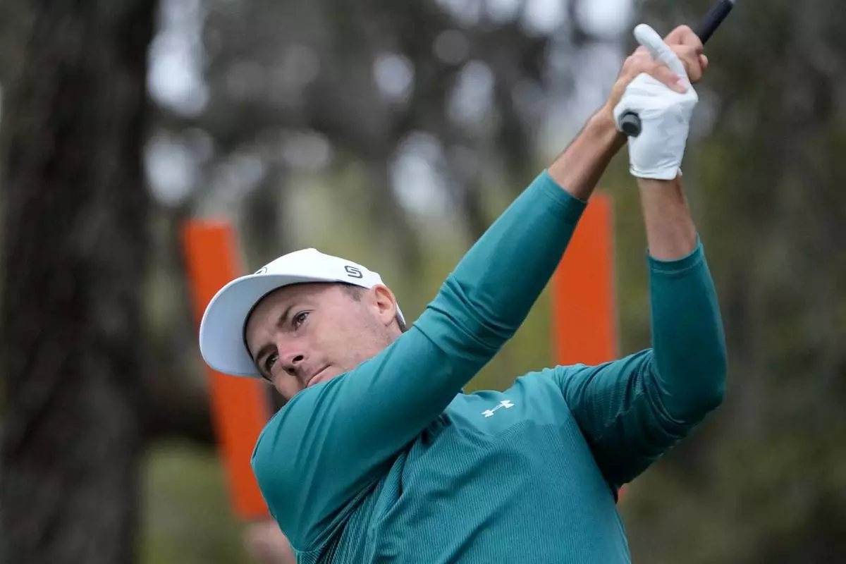 Jordan Spieth hits off the 12th tee during the second round of The Players Championship golf tournament Friday, March 13, 2026, in Ponte Vedra Beach, Fla. (AP Photo/Gerald Herbert)