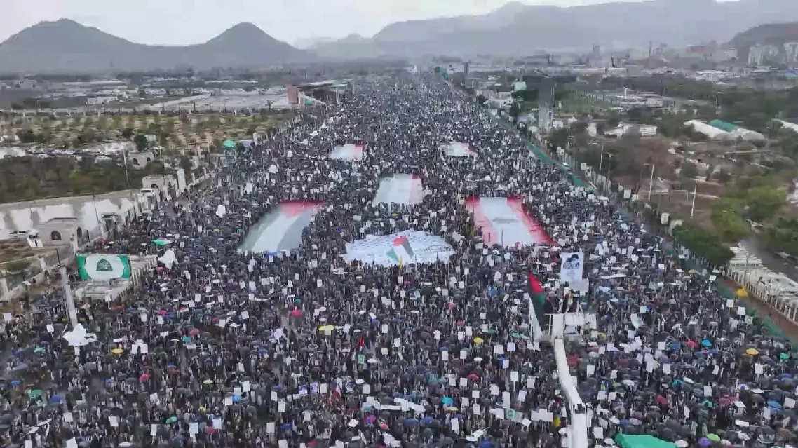 Yemenis took to the streets on Friday in Al-Sabeen Square in the capital, Sanaa, as well as in other areas under Houthi control, to voice support for the Palestinian people and condemn the continued military strikes by the United States and Israel against Iran.