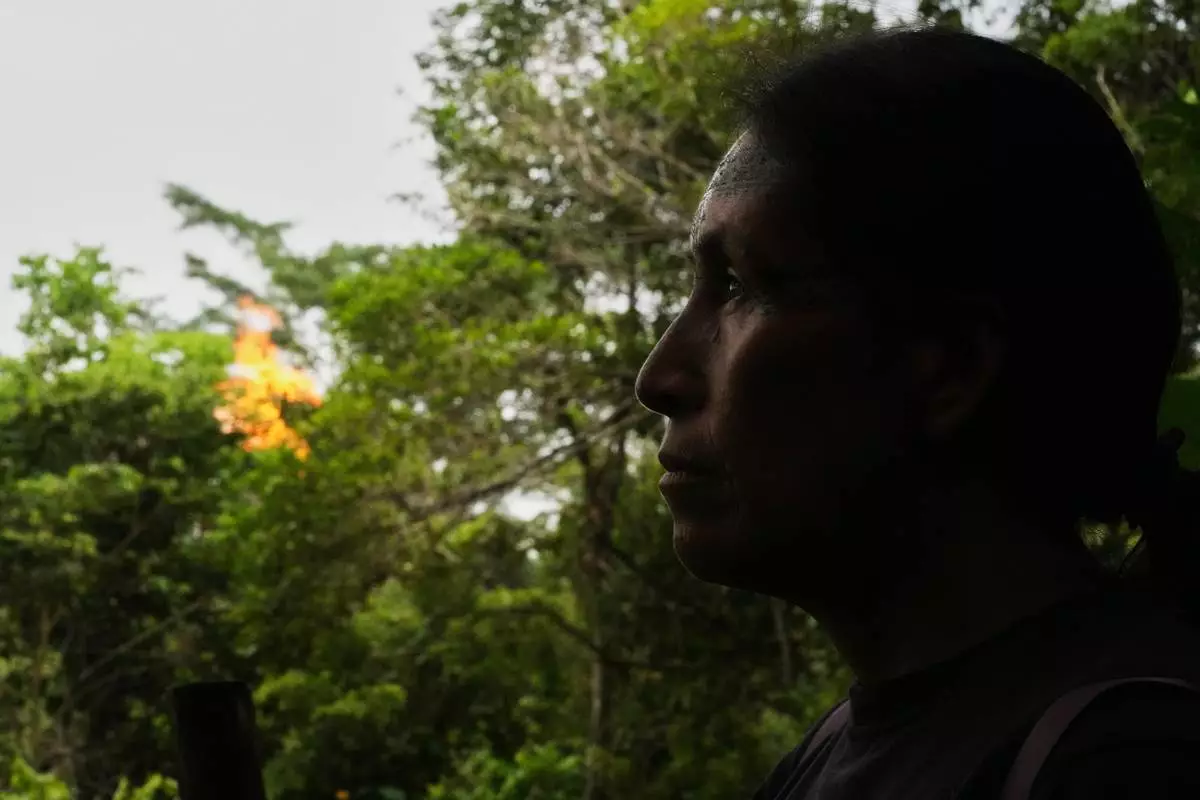 NUEVA LOJA, Ecuador (AP) — Standing beside a stream stained dark with oil in Ecuador’s northern Amazon, an Indigenous woman shook her head in disbelief as she stared at the oily sheen drifting across the water and broken pipes cutting through the forest. Nearby, gas flares burned above the treetops.
