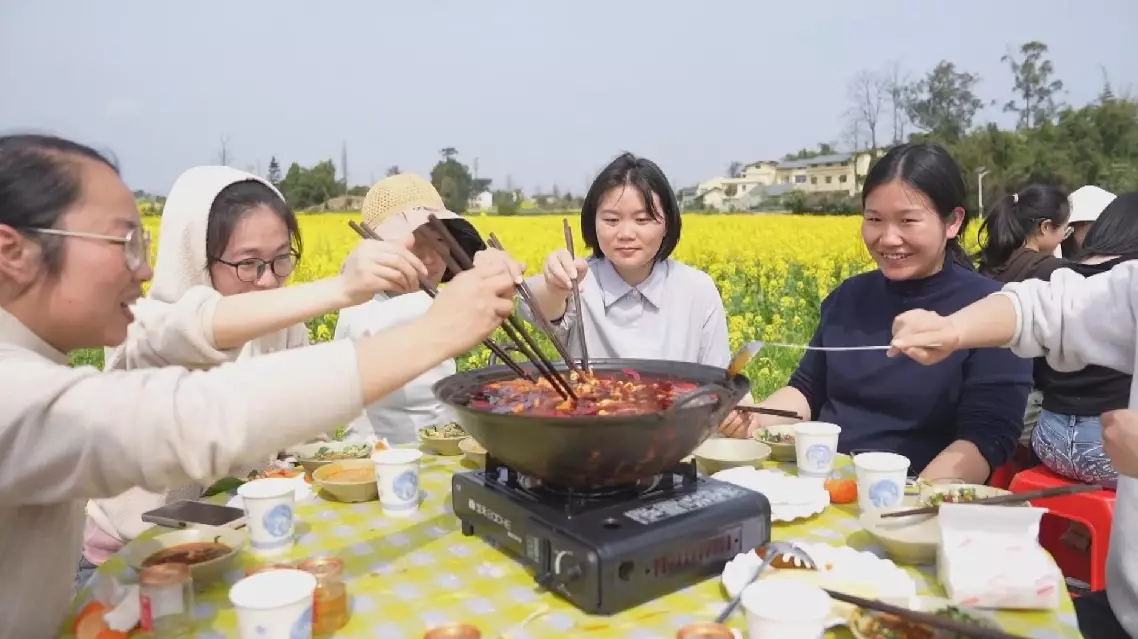 "This was my first time enjoying hotpot in a rapeseed field. The scenery is breathtaking, the hot pot is delicious, and everything is just perfect," said Huang Nuo, a visitor.