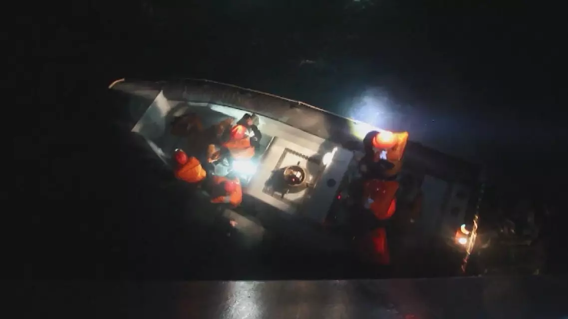 The fishing boat, registered in east China's Zhejiang Province, lost both power and electricity in the collision that happened on Thursday evening, which ruptured its hull and caused severe flooding.