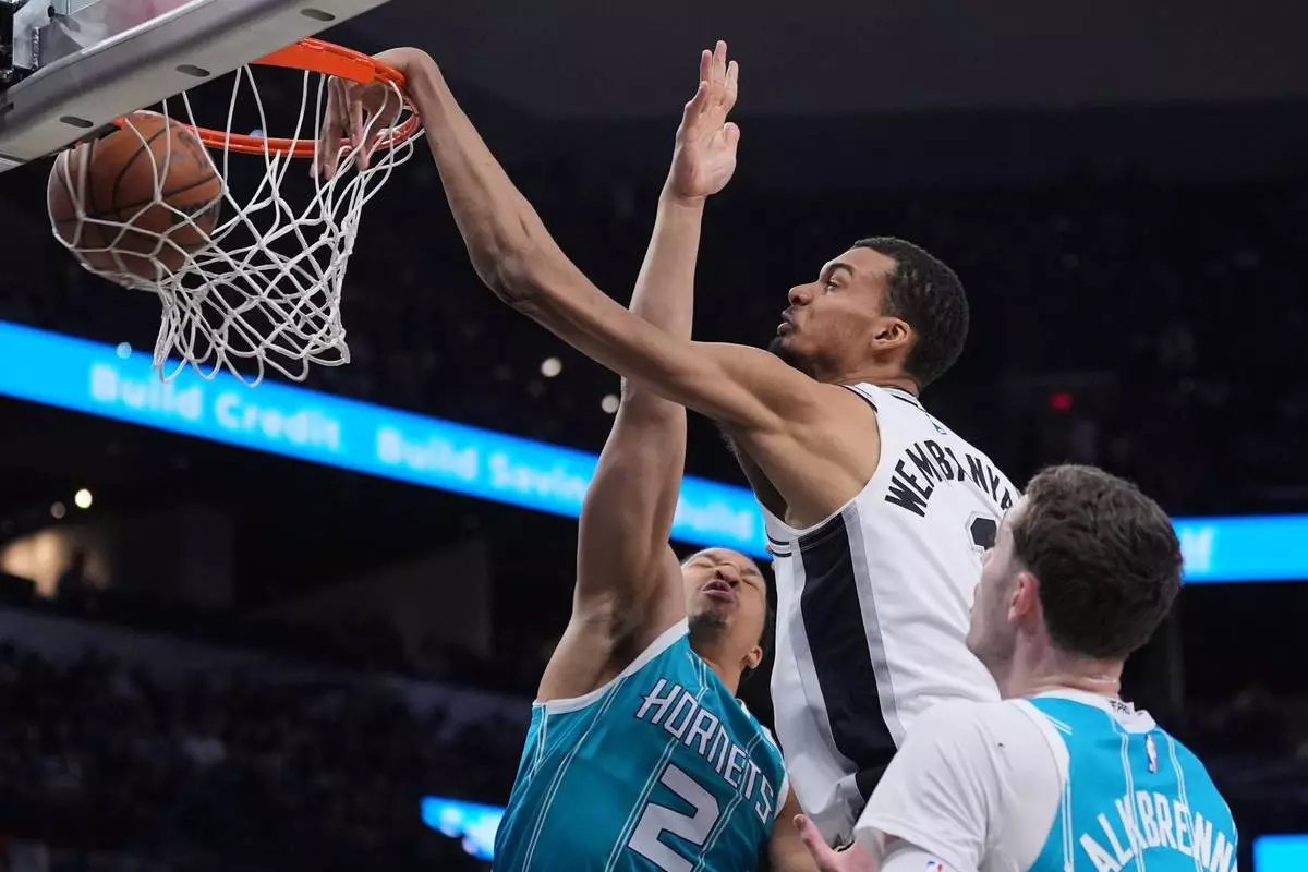 SAN ANTONIO (AP) — Victor Wembanyama had 32 points, 12 rebounds, eight assists and three blocks in his return from a one-game absence, leading the San Antonio Spurs to a 115-102 victory over the Charlotte Hornets on Saturday.