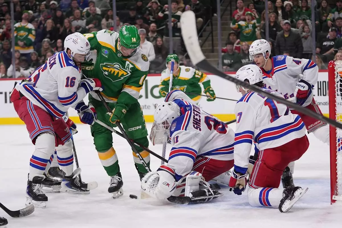 ST. PAUL, Minn. (AP) — Igor Shesterkin made 46 saves and Vladislav Gavrikov had a goal and two assists as the New York Rangers extended their winning streak to four games with a 4-2 win over the Minnesota Wild on Saturday night.