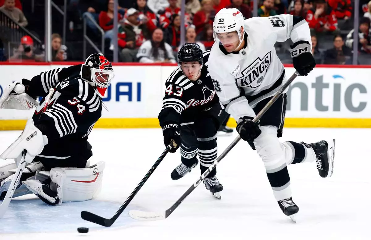 NEWARK, N.J. (AP) — Jack Hughes scored the go-ahead goal with 2:29 to play and Jake Allen made 27 saves as the New Jersey Devils edged the Los Angeles Kings 6-4 on Saturday night.