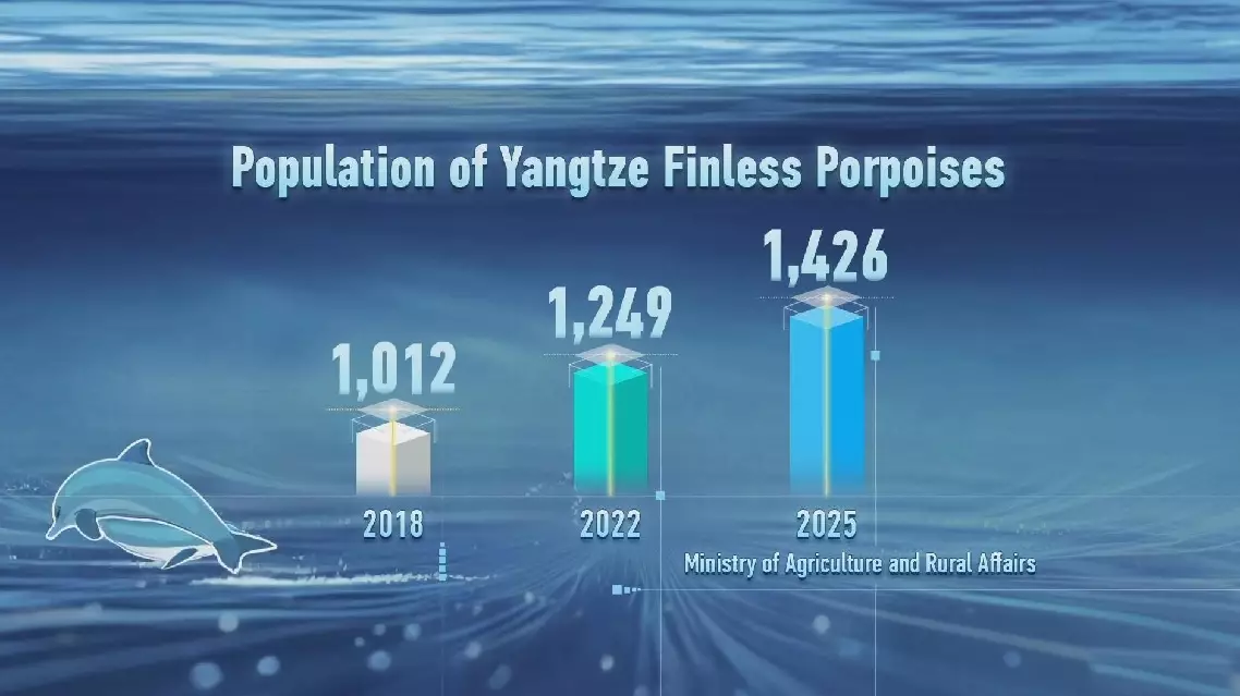 According to official data released in January, the population of the Yangtze finless porpoise has increased to 1,426, up 177 from the 2022 survey, thanks to a 10-year fishing ban in the Yangtze River that started from Jan 1, 2021.