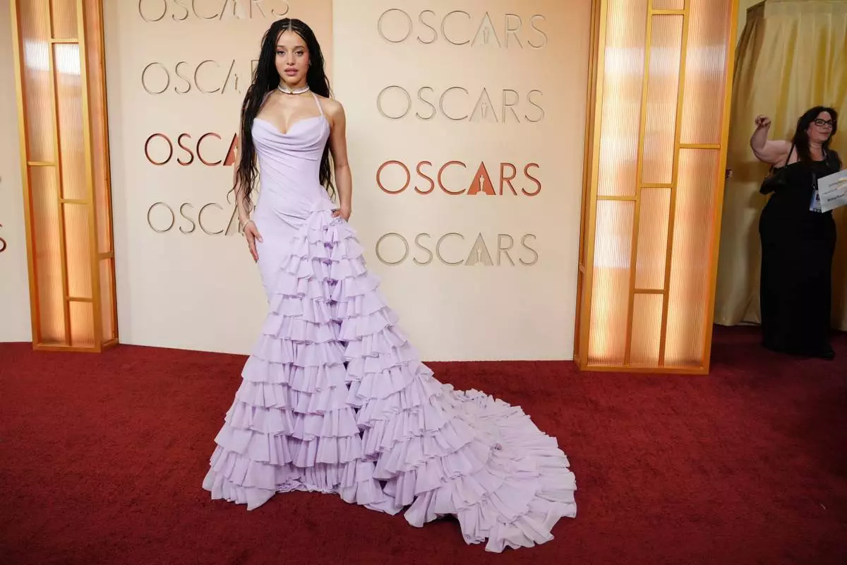 Chase Infiniti arrives at the Oscars on Sunday, March 15, 2026, at the Dolby Theatre in Los Angeles. (AP Photo/Gregory Bull)