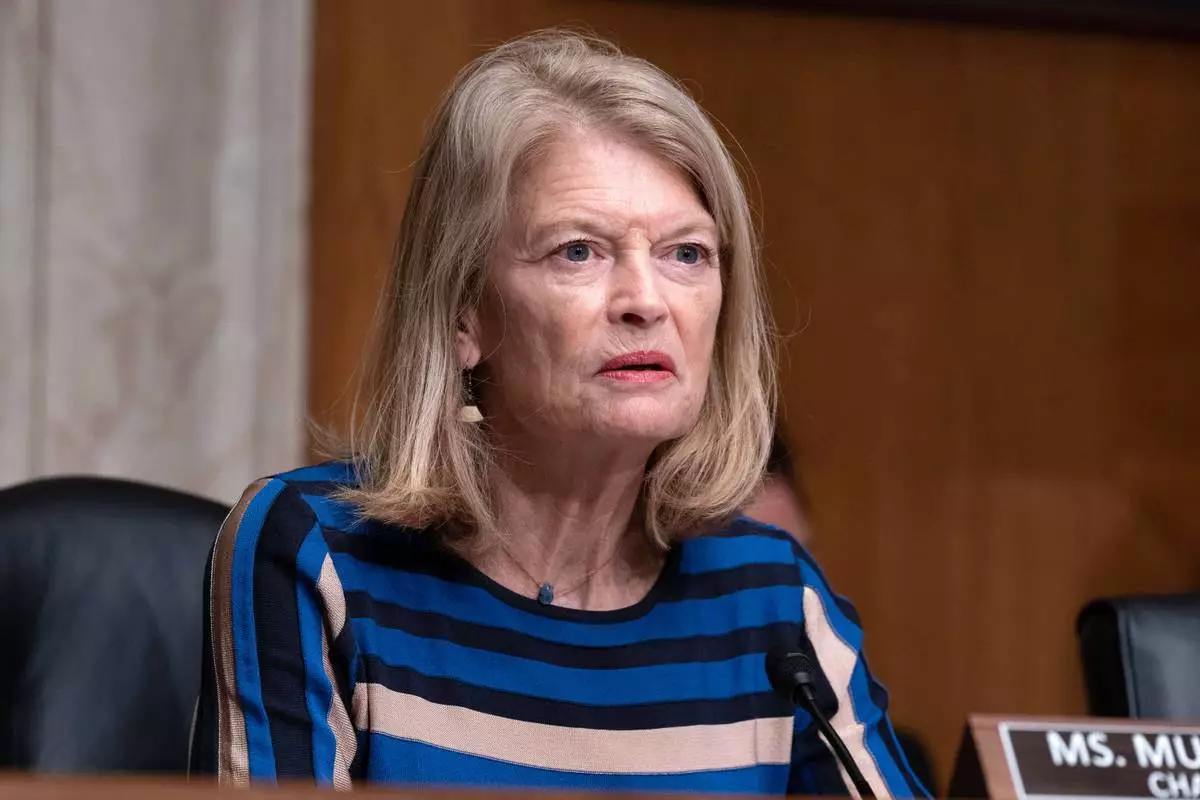 Sen. Lisa Murkowski, R-Alaska, Chairman of the Senate Committee on Indian Affairs speaks at the oversight hearings to examine Federal policies governing Indian water rights settlements, including S.953, to provide for the settlement of the water rights claims of the Navajo Nation, the Hopi Tribe, and the San Juan Southern Paiute Tribe on Capitol Hill, Wednesday, March 11, 2026, in Washington, (AP Photo/Jose Luis Magana)