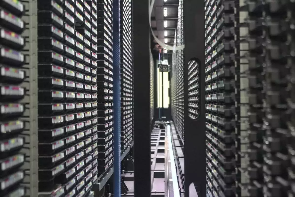 Computer equipment at the Poznan Supercomputing and Networking center is seen in Poznan, Poland, Wednesday, Jan. 28, 2026. (AP Photo/Pietro De Cristofaro)