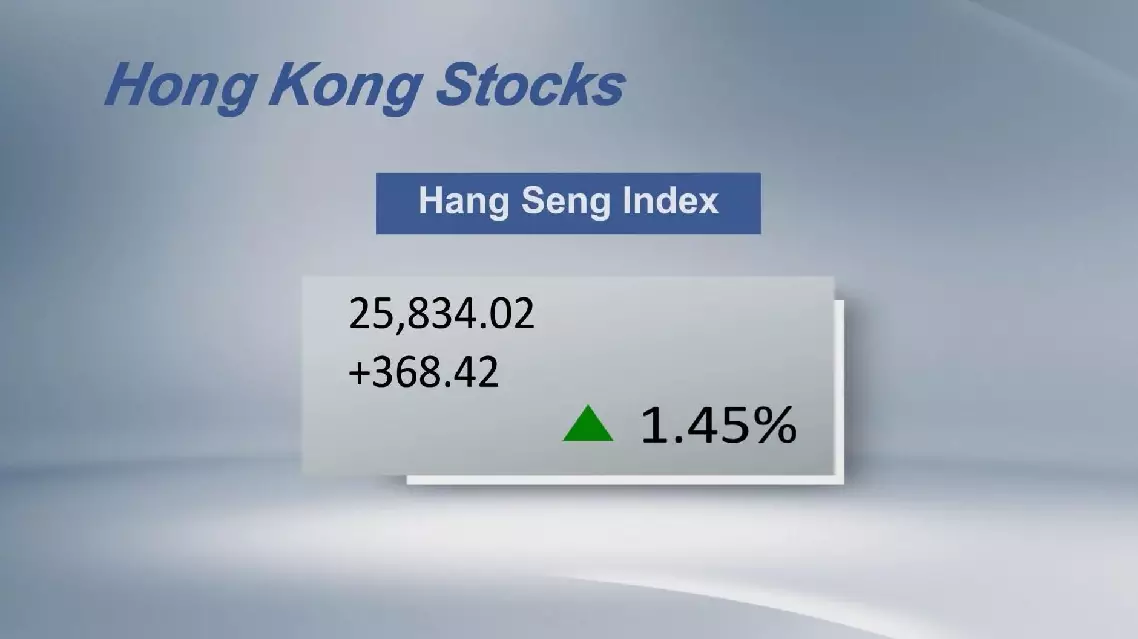The Hang Seng China Enterprises Index rose 1.67 percent to end at 8,816.32 points, and the Hang Seng Tech Index climbed 2.69 percent to end at 5,111.78 points.